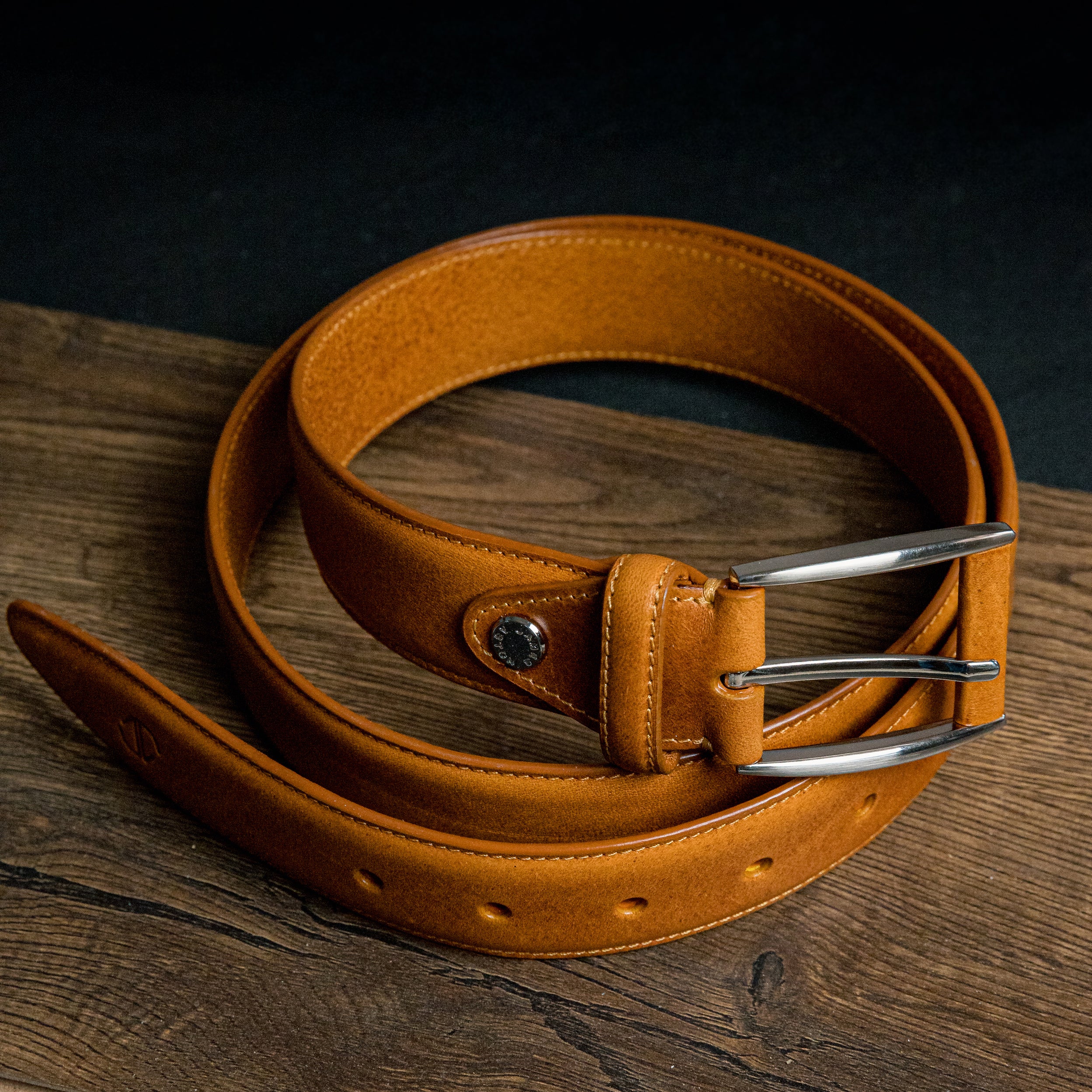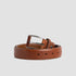 The Federico Classic Vegetable Tanned Italian Full Grain Leather Dress belt holds a distinct demeanor. The word ‘Federico’ is interpreted to be ‘peaceful ruler’ and this explanation falls exactly parallel to the design of this belt. The belt subtly exhibits an aura of streamline class. This Australian Nut coloured belt, although simple in its design, adorned with a Unique leather-covered Prong Platform Buckle can add zeal to the office wear outfits.